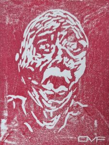 Fisherman Print | Ink on Paper | 10″ x 8″ The face of a working man. Hard. Expressive.Single block black & white print. Prev. Next To Gallery Beggar